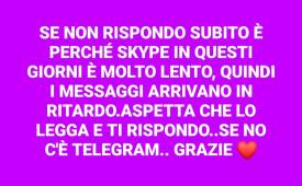 IL MIO VISO C'È SOLO SÉ C'È IL TUO SE NO NO COME IO VEDO TE TU VEDI ME... PAGAMENTI SOLO TRAMITE IL SITO. NON C'È LA LISTA DELLA SPESA ESPOSTA. COPIA IN COLLA . QUINDI BASTA DIRMI COSA. TI PIACE E QUANTO TEMPO DESIDERI STARE. E IO TI DICO...💋💋💋. NO INCONTRI!!!!!SOLO CAM. PS. L' APP TEAMS PURTROPPO LA MAGGIOR PARTE DELLE VOLTE I. MESSAGGI ARRIVANO VISIBILI IN RITARDO ,SÉ NON IL GIORNO DOPO. È PREFERIBILE TELEGRAM O. WHATSAPP....